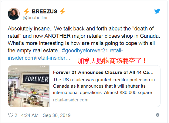 Forever 21正式宣布关闭加拿大44家店 今年倒了一堆店购物商场要空了 蒙特利尔打折 微信公众号文章阅读 Wemp