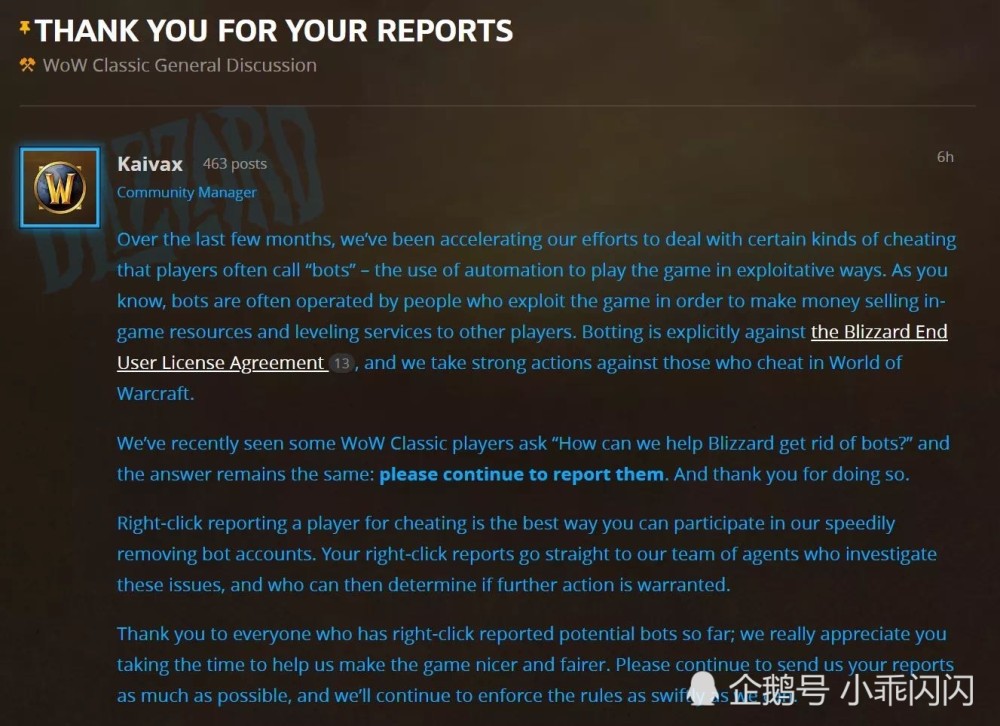 魔兽世界怀旧服 工作室转战外服 美服发布蓝贴鼓励玩家举报 腾讯新闻